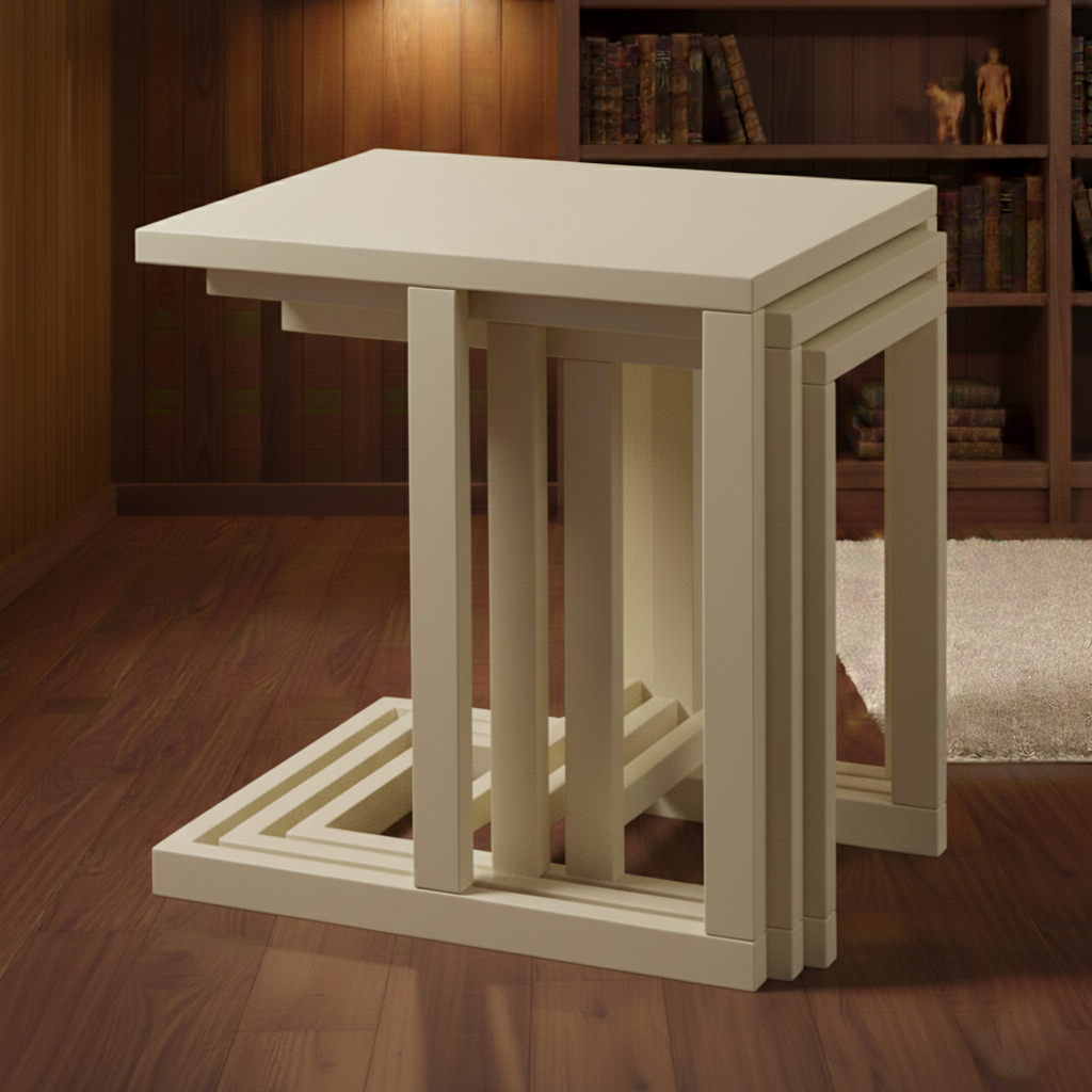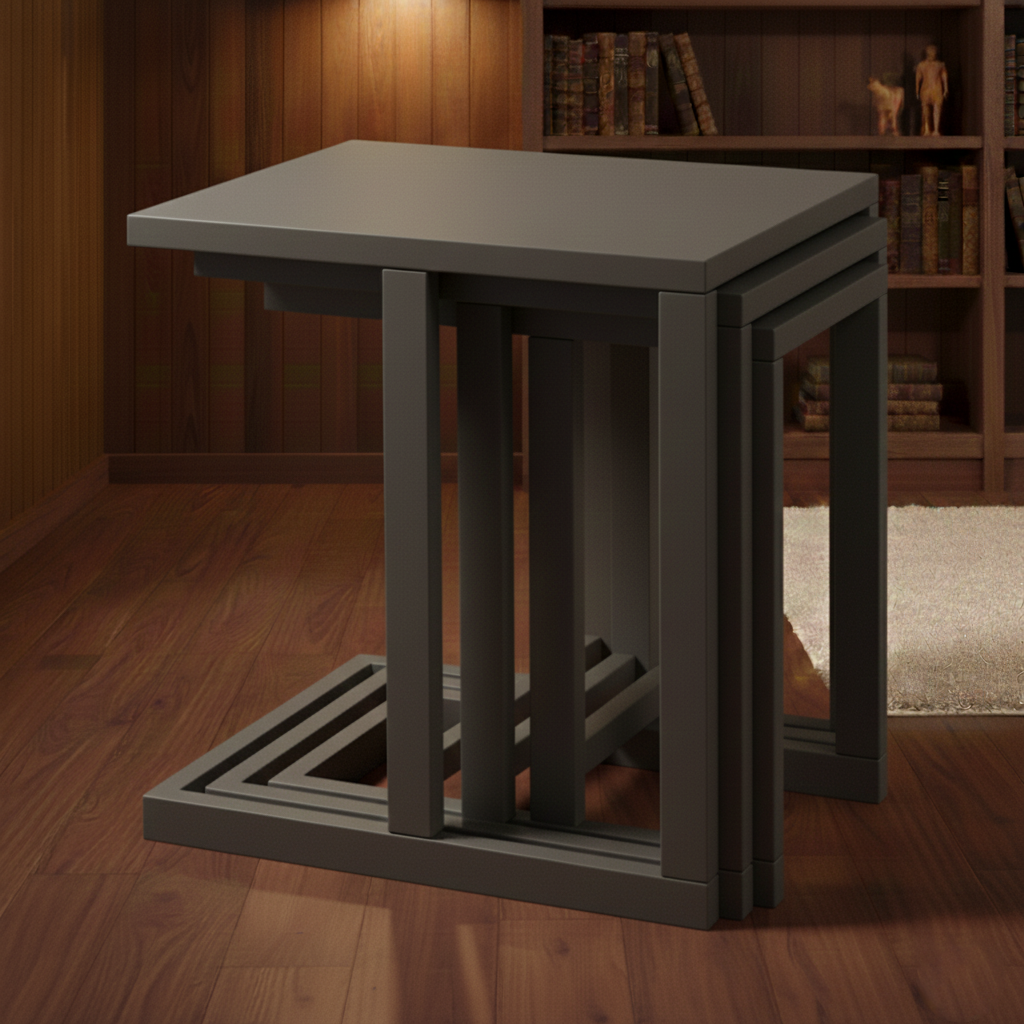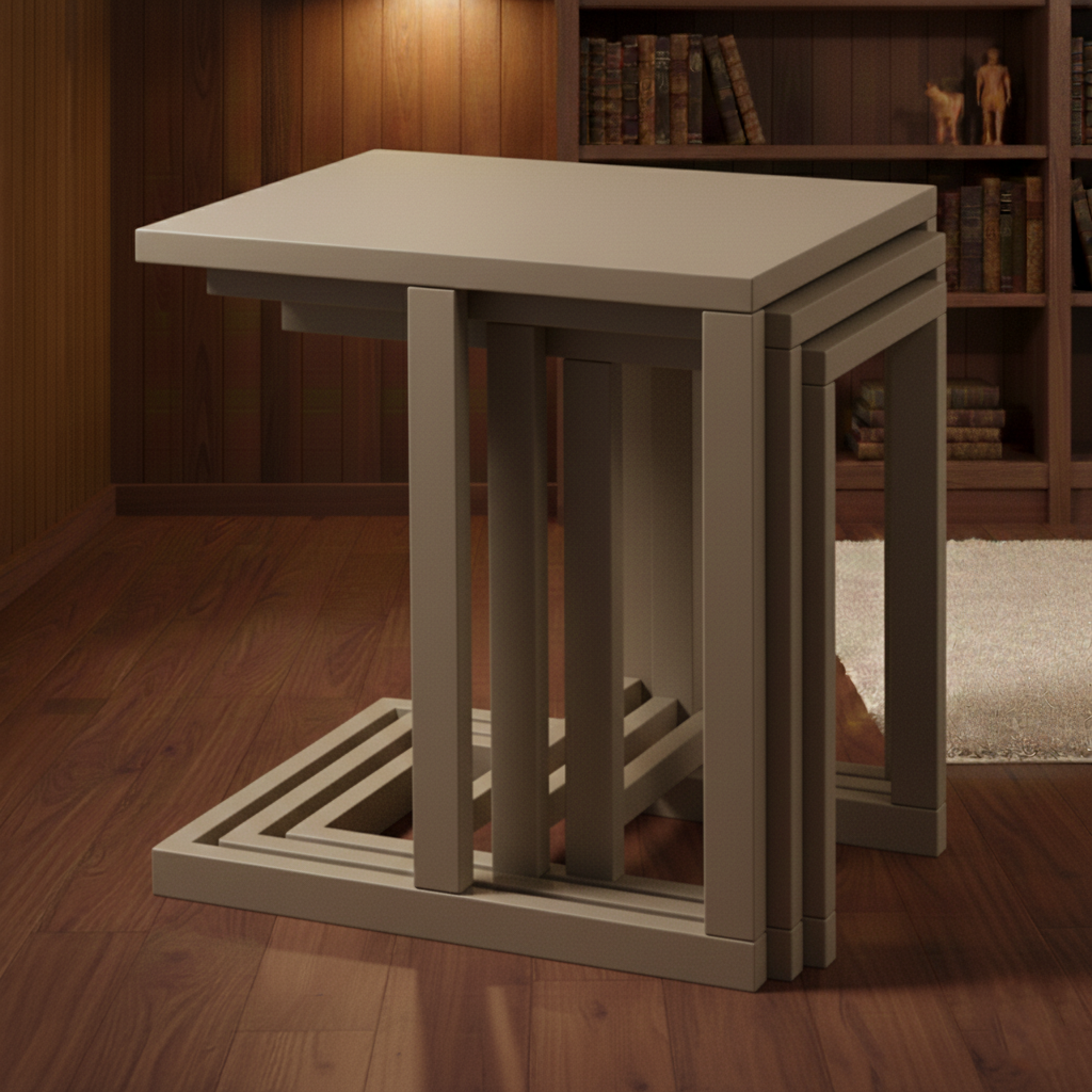 Genellikle tek satılan C sehpaların aksine, bu modelin 3’lü zigon şeklinde tasarlanması, onu salonun en stratejik parçası yapar. İhtiyaç anında üç ayrı servis sehpasına dönüşür, işiniz bittiğinde tek bir blok halinde kenara çekilir.