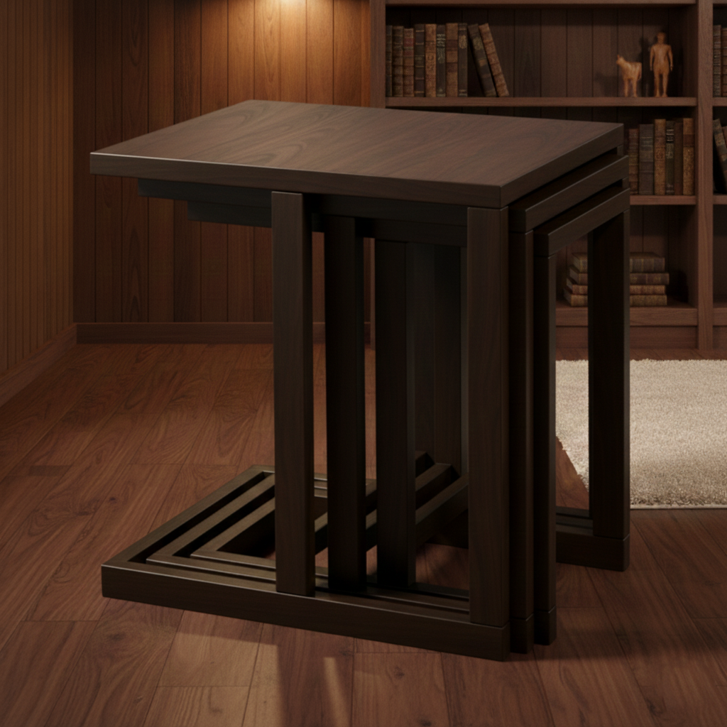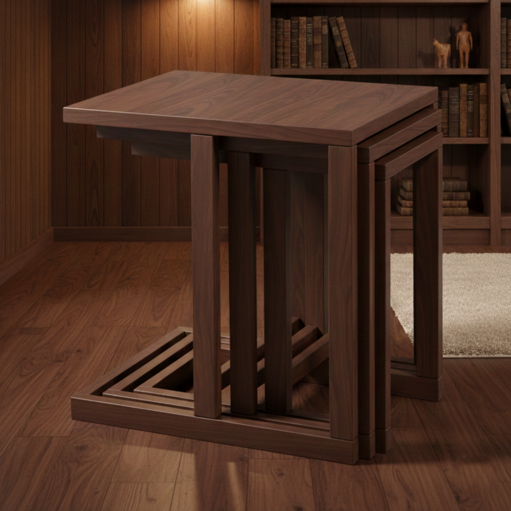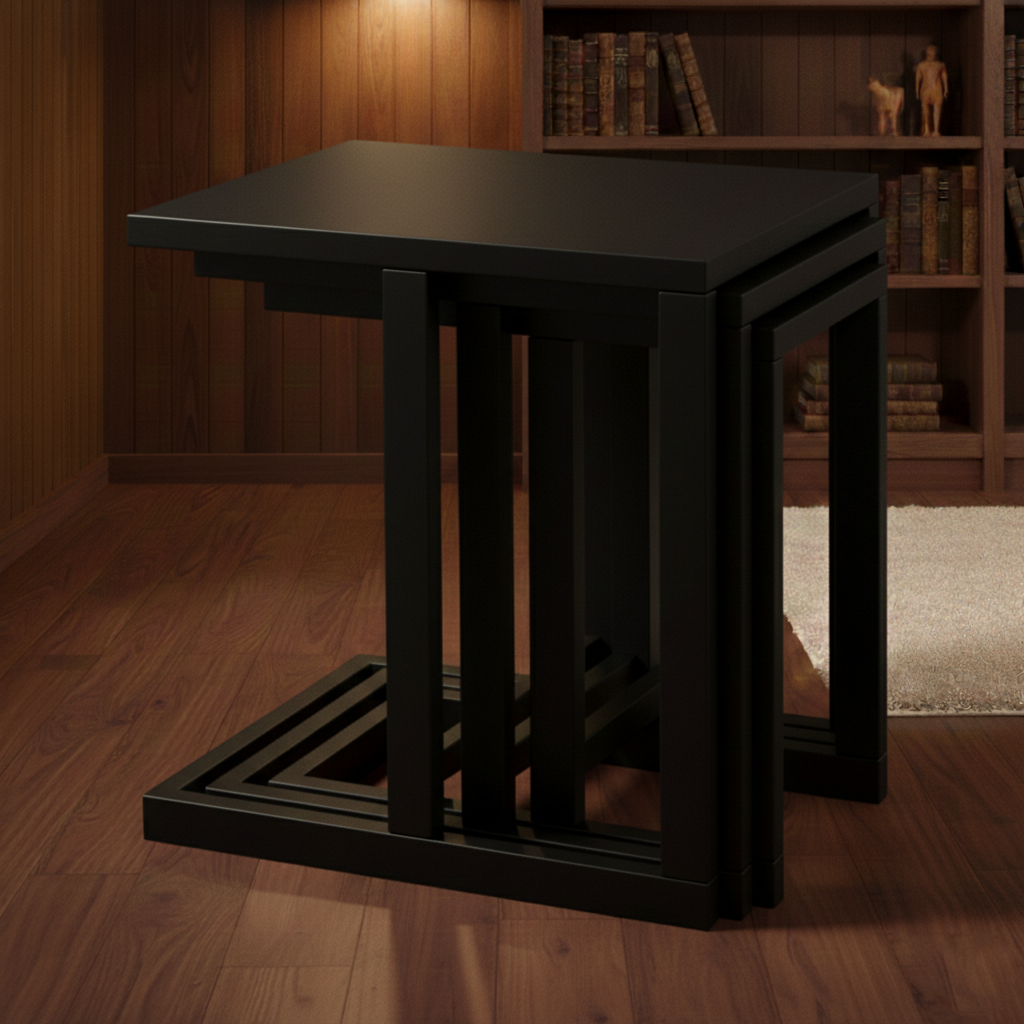 Genellikle tek satılan C sehpaların aksine, bu modelin 3’lü zigon şeklinde tasarlanması, onu salonun en stratejik parçası yapar. İhtiyaç anında üç ayrı servis sehpasına dönüşür, işiniz bittiğinde tek bir blok halinde kenara çekilir.