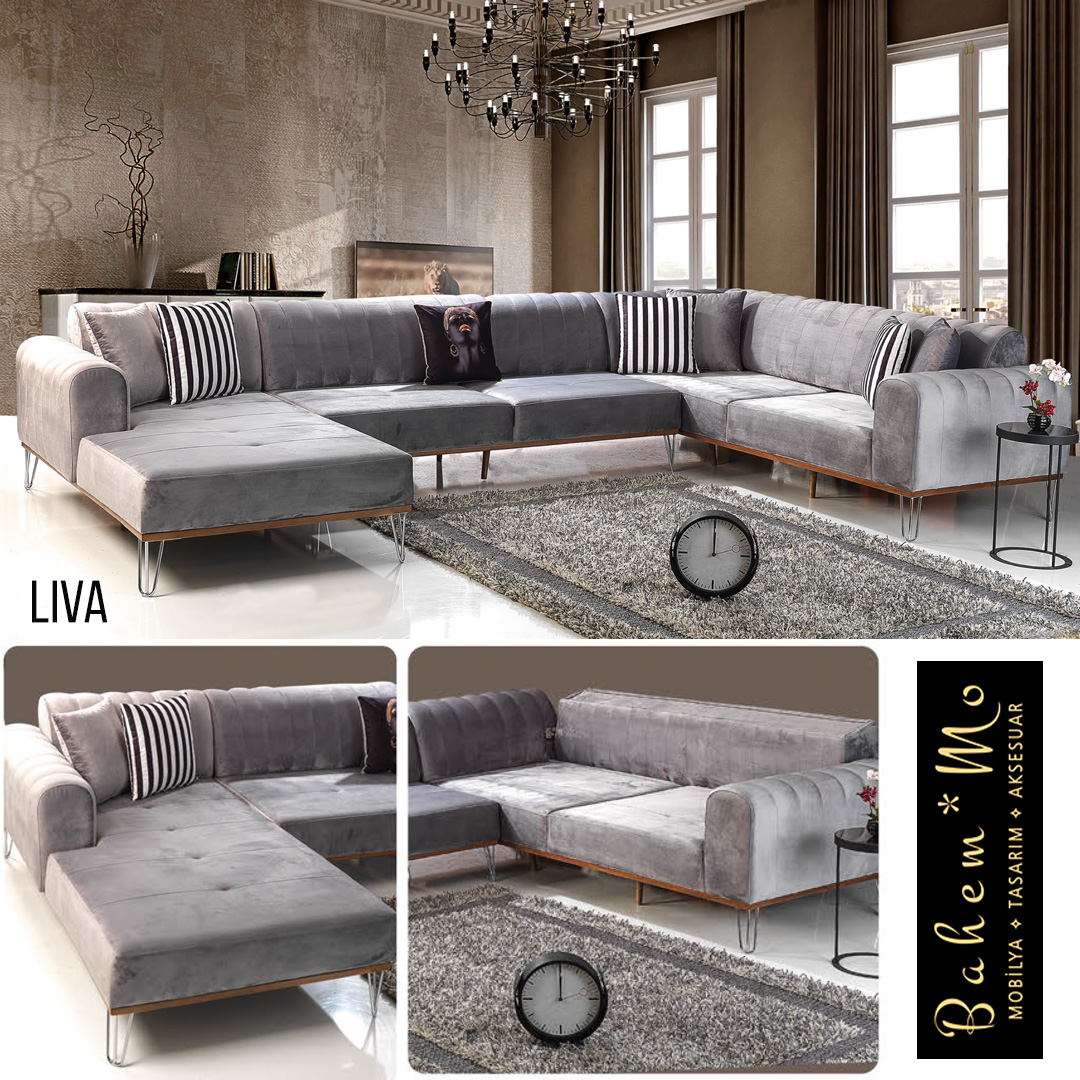 Geniş mekanlar için kalabalık oturma düzenine göre tasarım yapılmıştır. Dayanıklı, silinebilir, leke tutmaz kumaşı ile günlük kullanıma uygun olarak üretilmiştir.