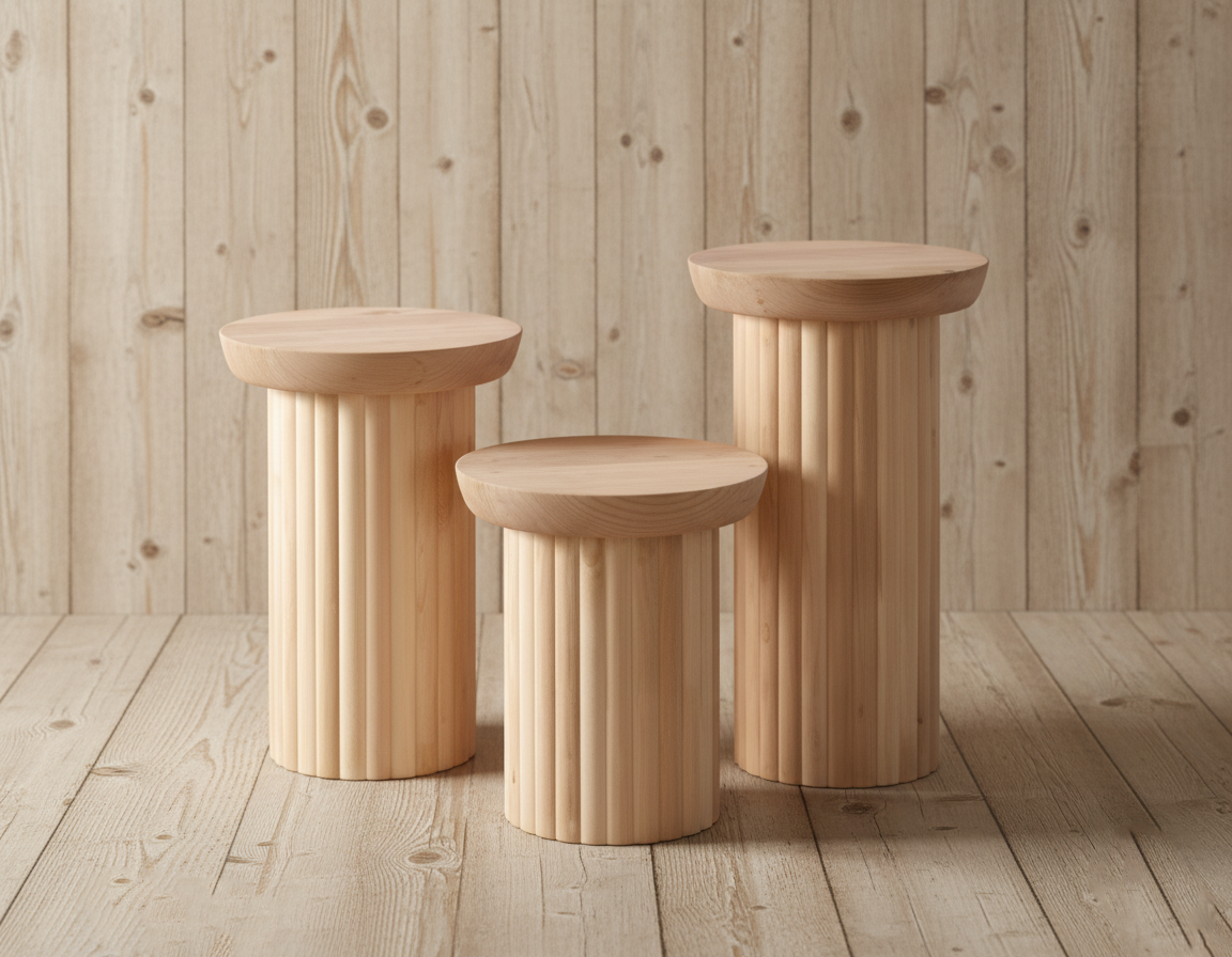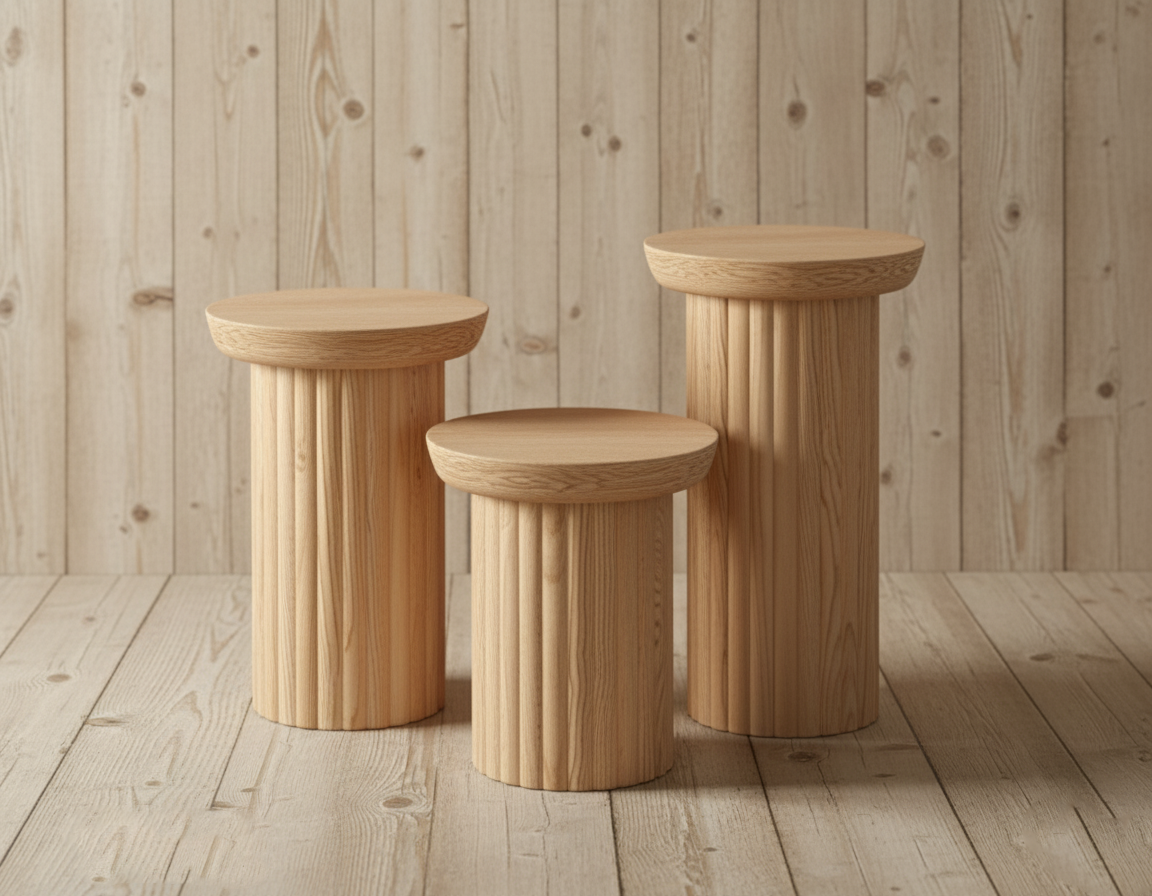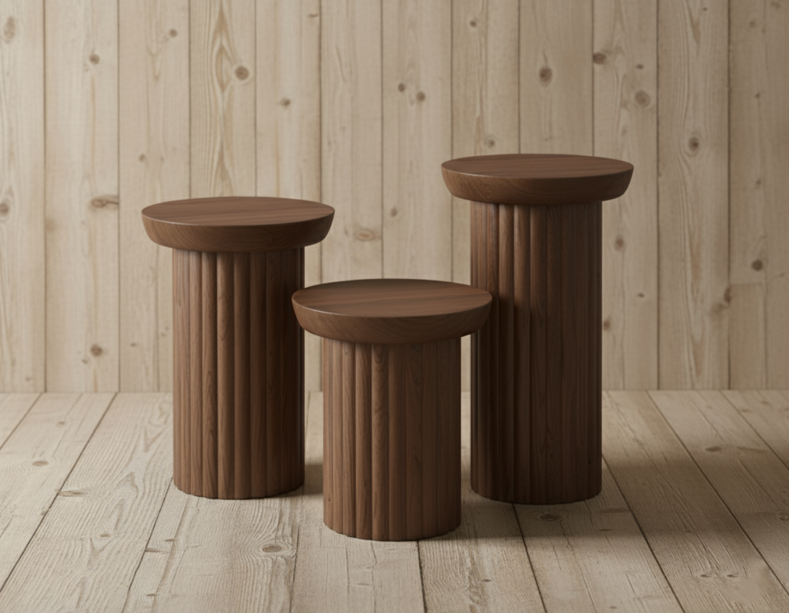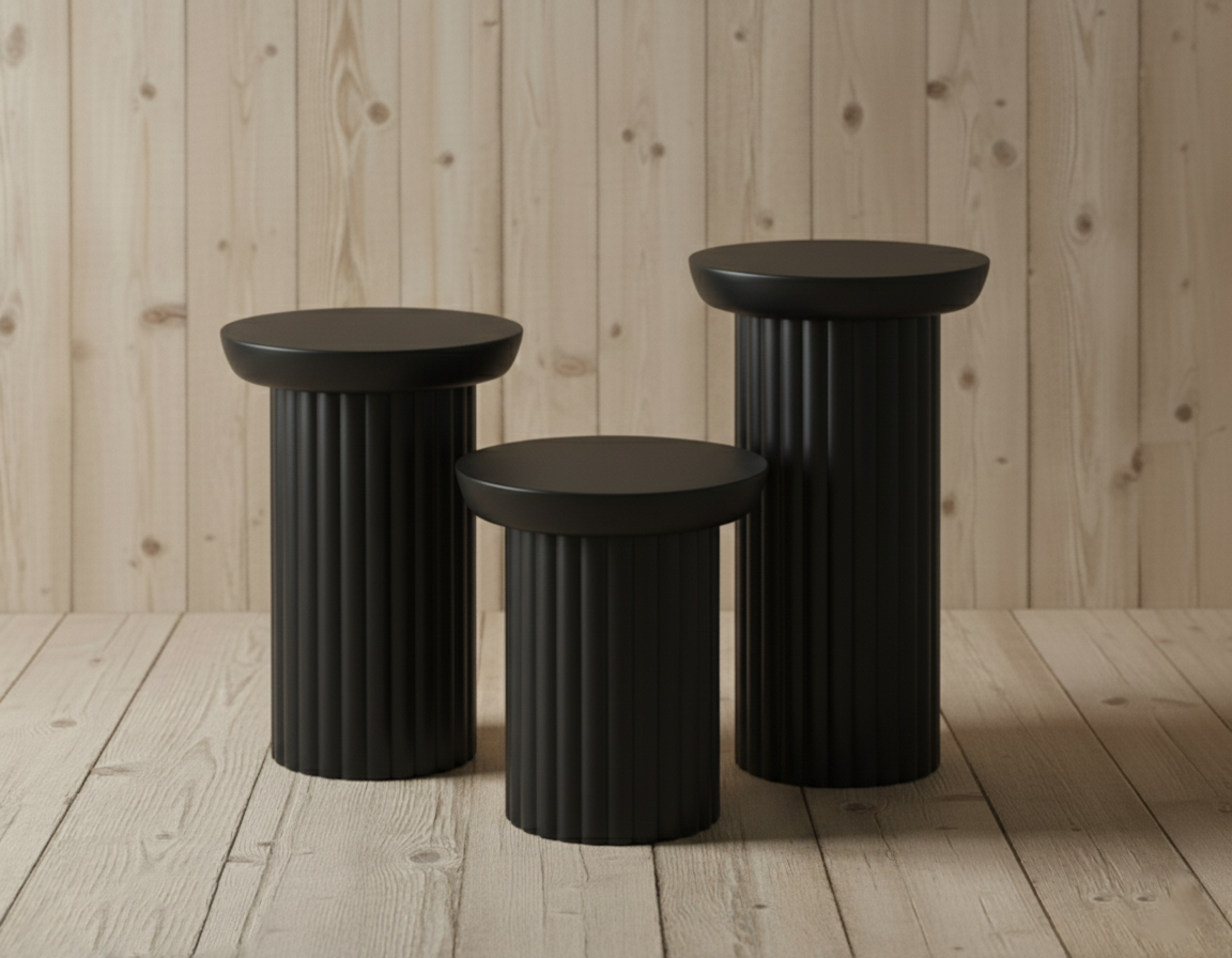 Sütun Serisi Yivli Silindir Zigon Sehpa Takımı