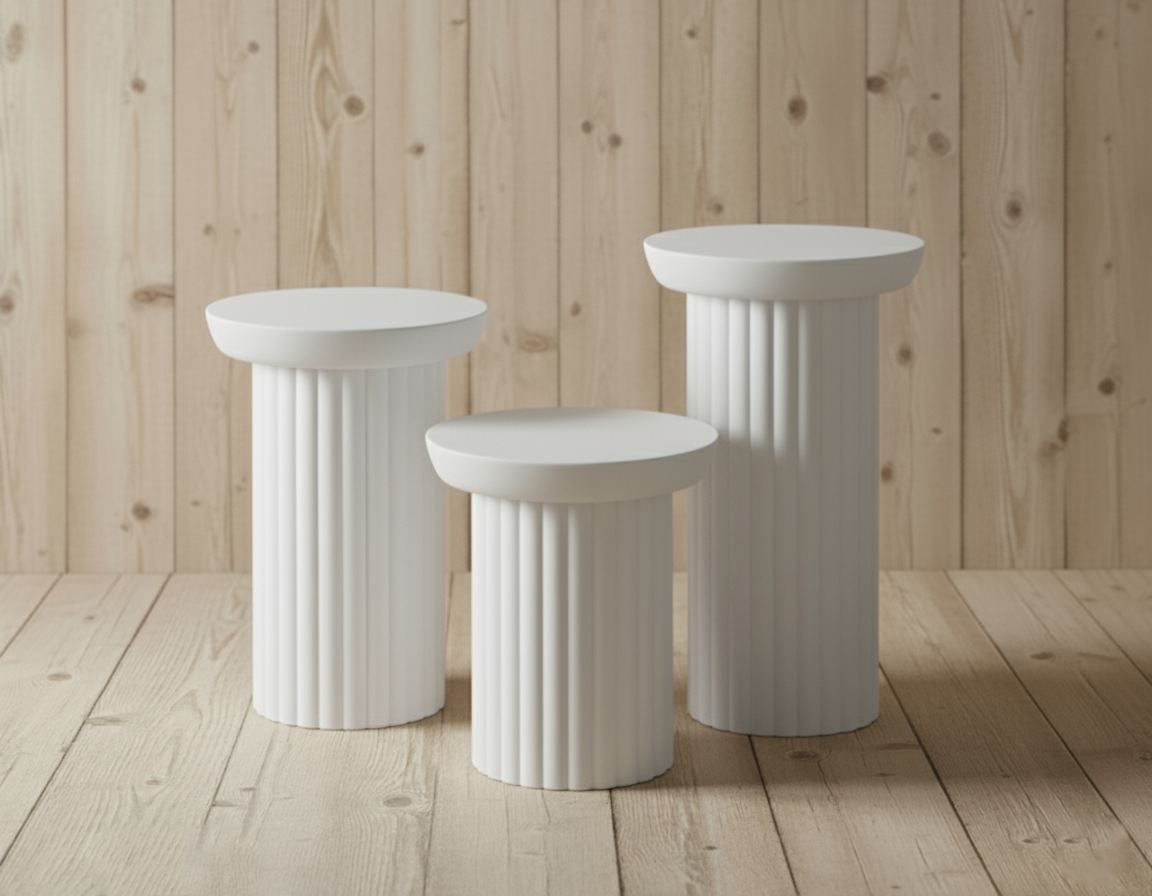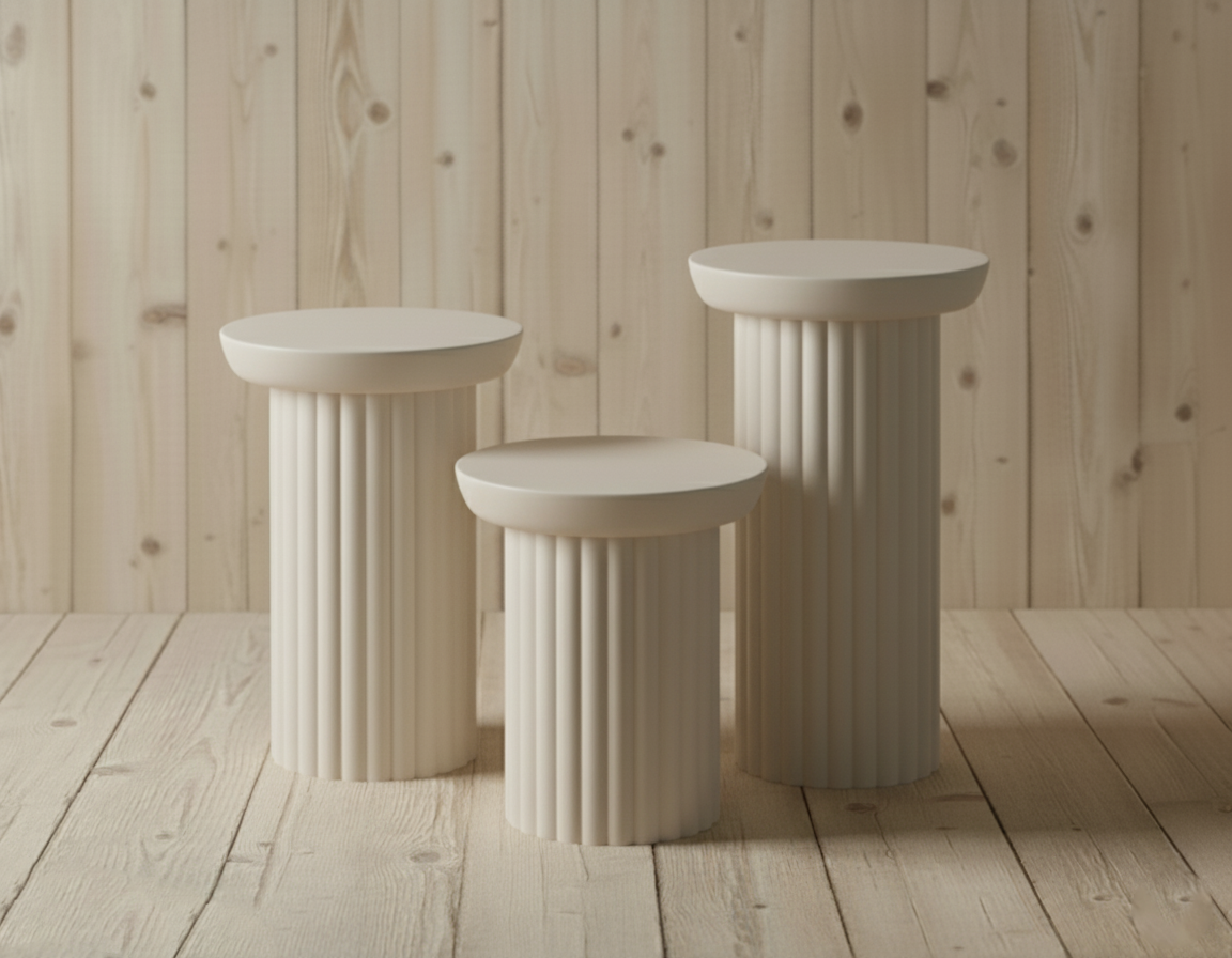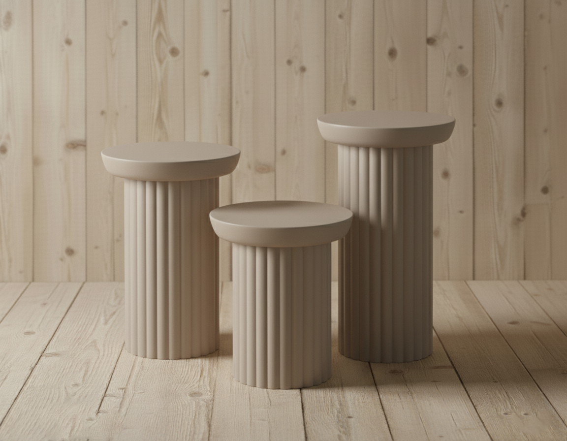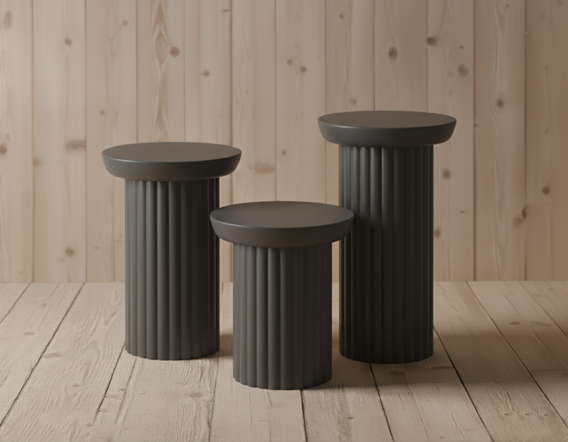 Antik mimarinin asaletini modern yaşam alanlarına taşıyın. Sütun Serisi, gövdesindeki dikey oluklu (yivli) dokusu ve silindirik formuyla salonunuzda mimari bir etki yaratır. Bu dikey çizgiler, ışık-gölge oyunlarıyla mekanınıza derinlik katarken, sağlam silindir yapısı devrilmelere karşı üstün bir denge sunar. Klasik şıklığı modern sadelikle harmanlayan Sütun Serisi, hem yan sehpa hem de dekoratif kaide olarak kullanılabilecek çok yönlü bir tasarımdır.