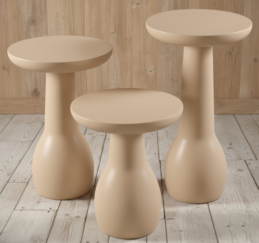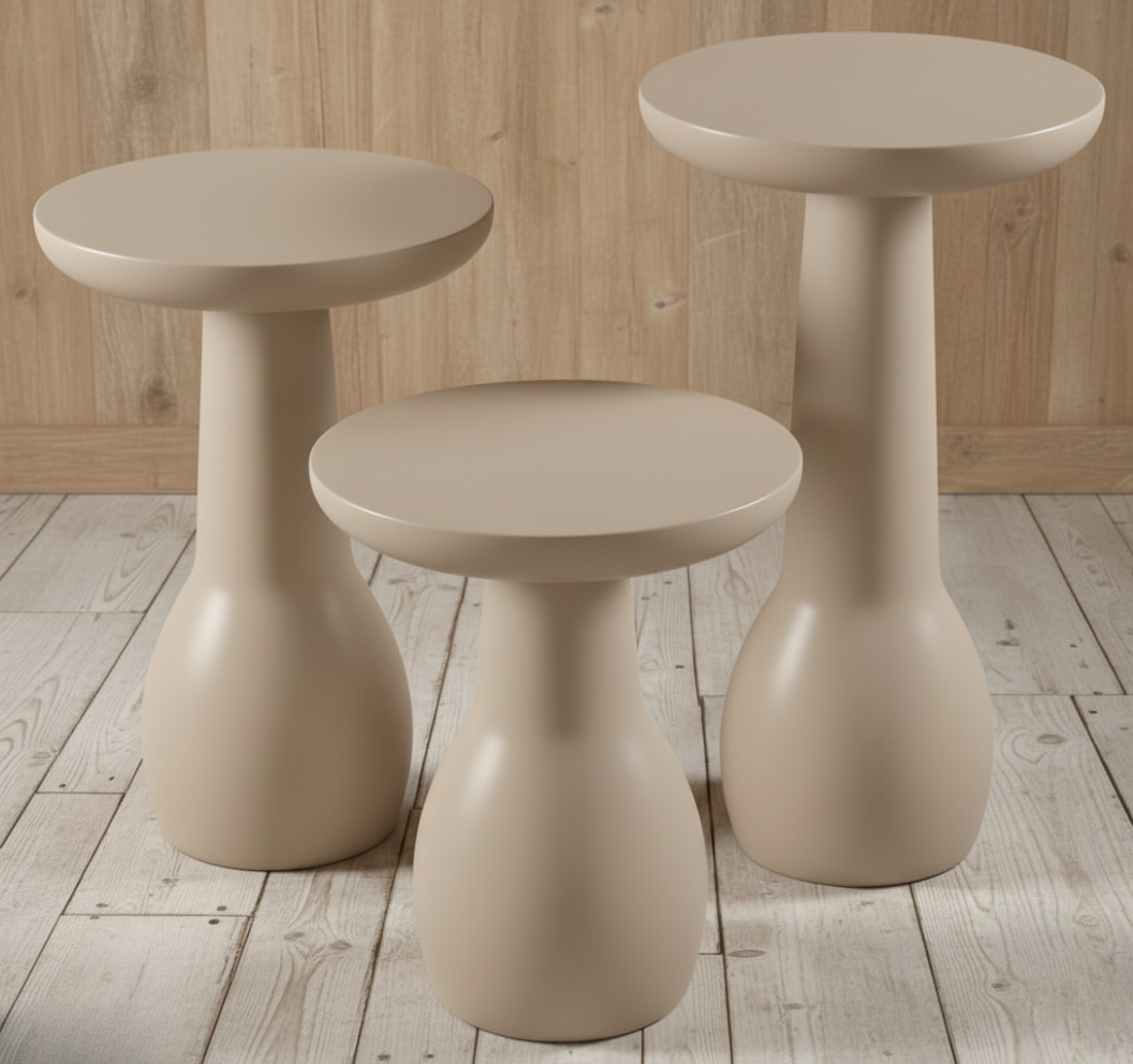 - İkili Kombin: Farklı renklerde iki adet Vazo sehpayı yan yana koyarak (örneğin Vizon ve Ekru) salonunuzda bir “enstalasyon” havası yaratabilirsiniz.