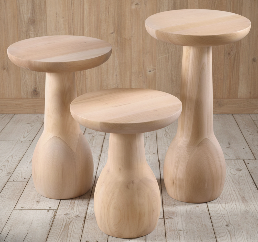 Vazo Serisi, doğadaki su damlası formundan ve geleneksel seramik işçiliğinden ilham alır. Ahşabın sert yapısının usta ellerde nasıl yumuşayıp ipeksi bir forma bürünebileceğinin en güzel kanıtıdır. Gövdesindeki “S” kıvrımı, gözü yormadan tabandan tavana doğru bir hareket hissi yaratır.
